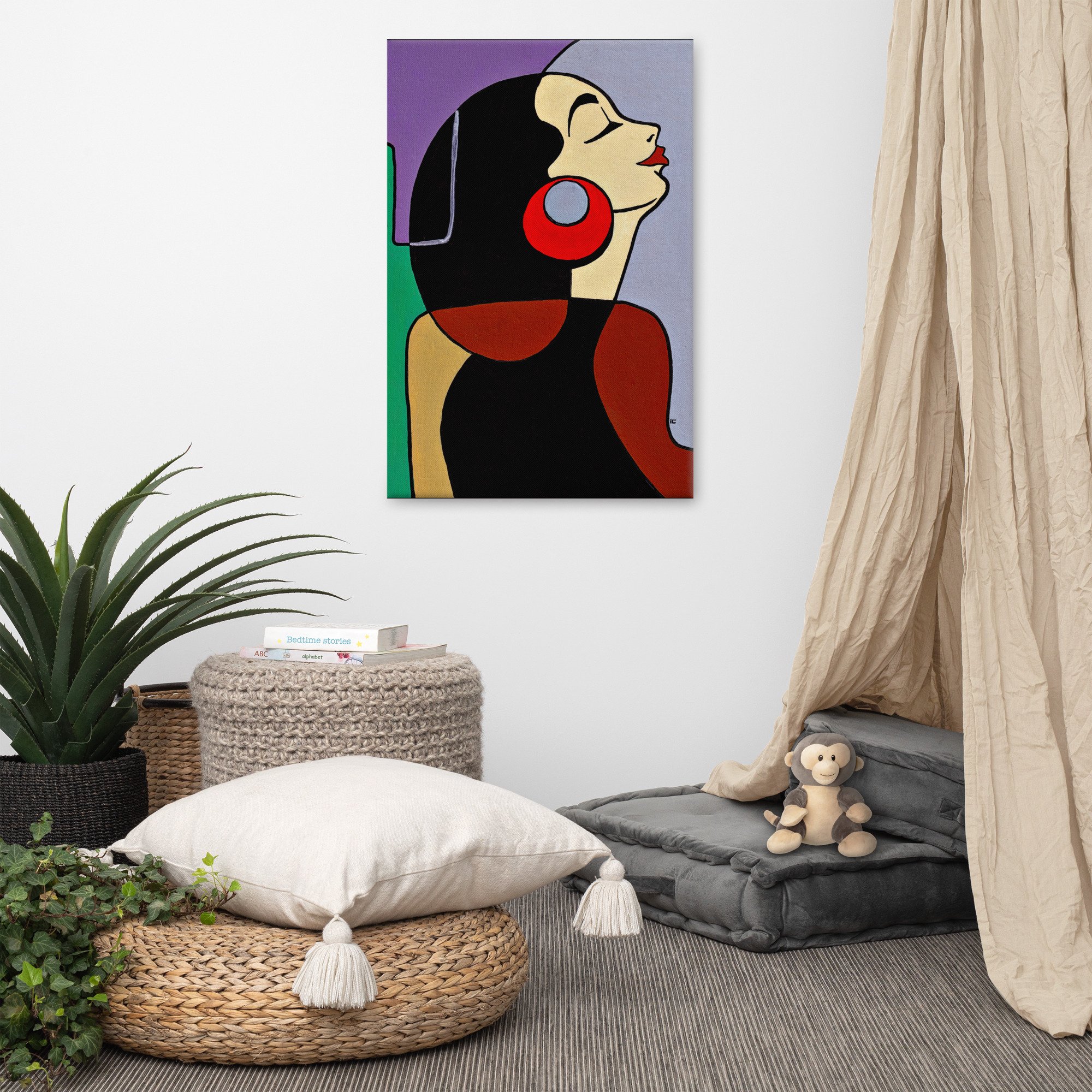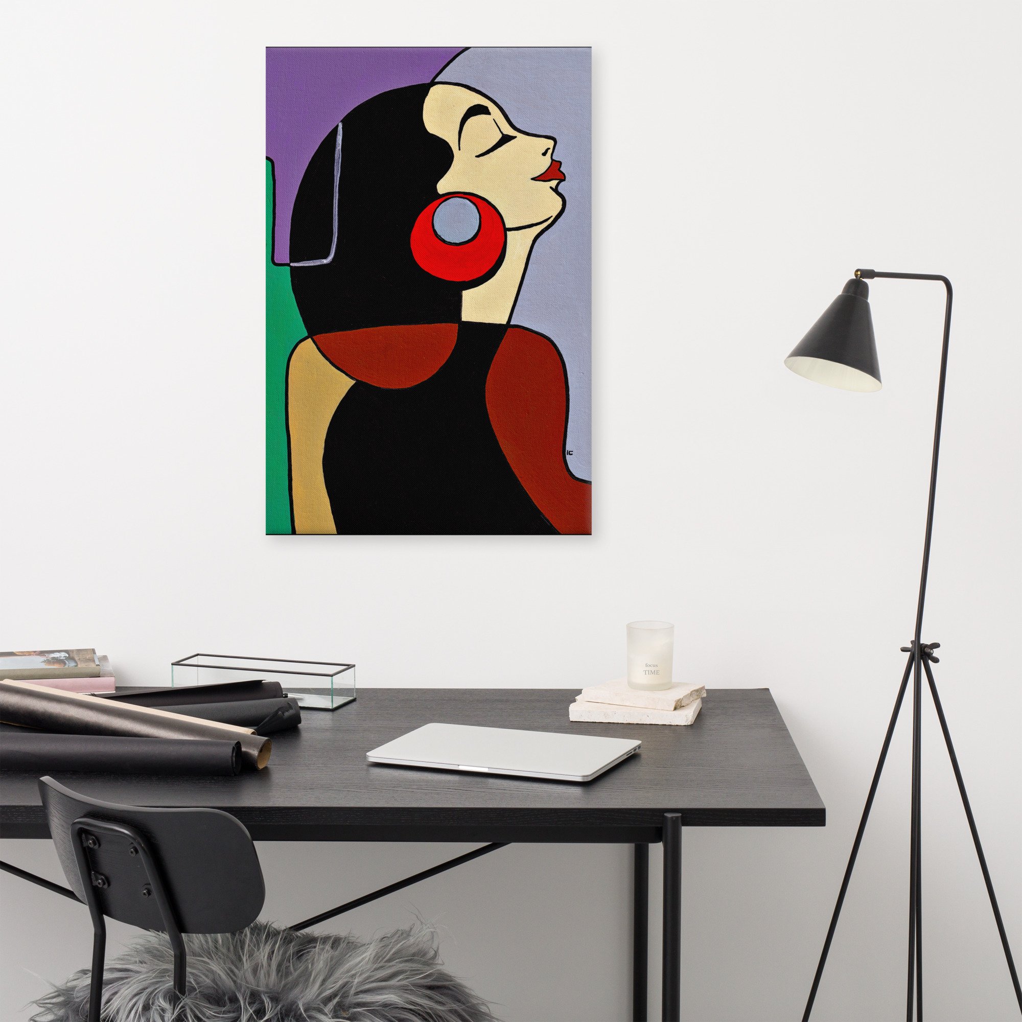 • Hand-stretched over solid wood stretcher bars